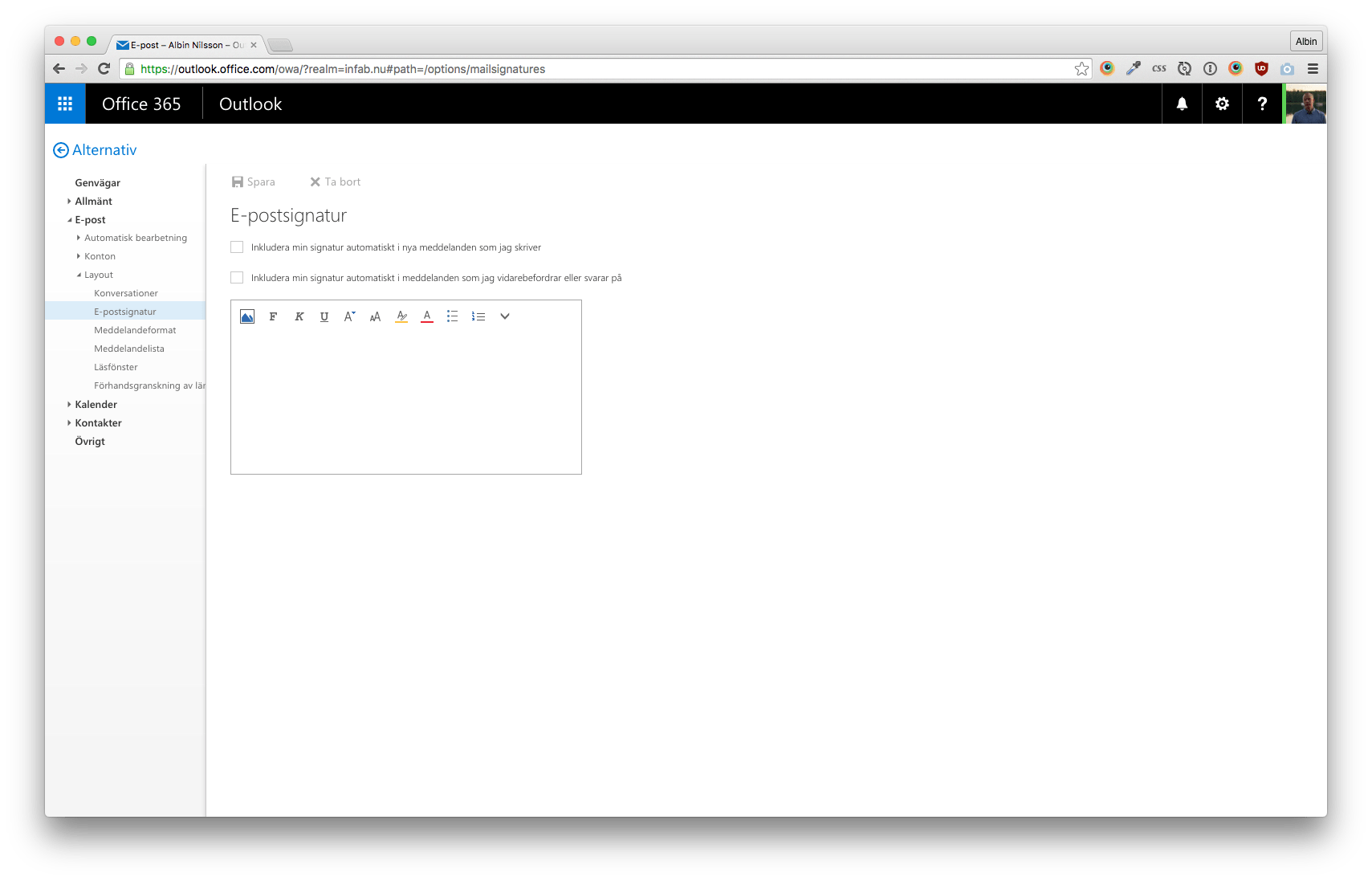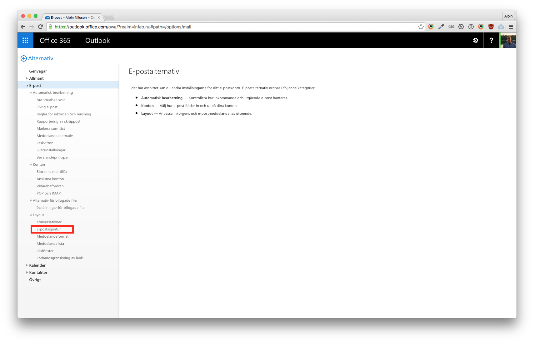 Expandera "E-post" ➞ "Layout", och välj sedan "E-postsignatur"