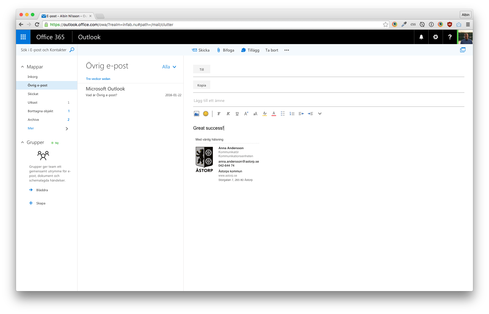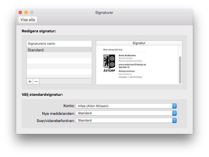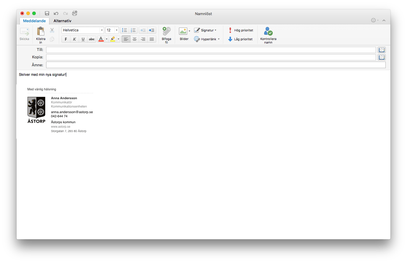 När du skapar ett nytt mail och väljer din nya signatur bör den se ut som nedan: