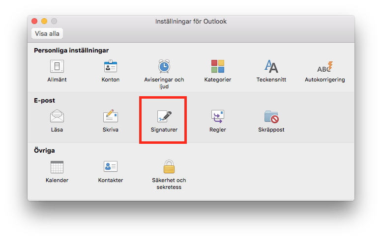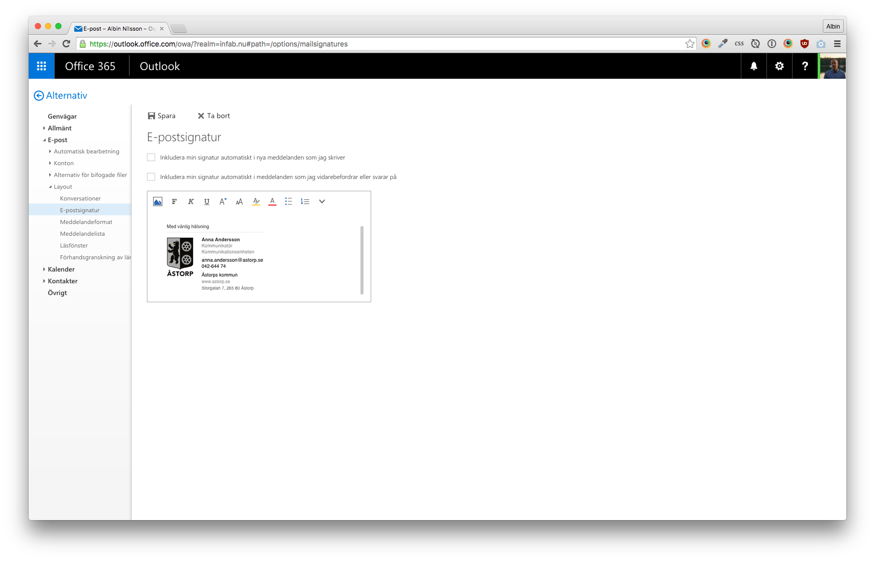 Signaturen bör se ut som nedan, om inte, testa stegen i den blå rutan